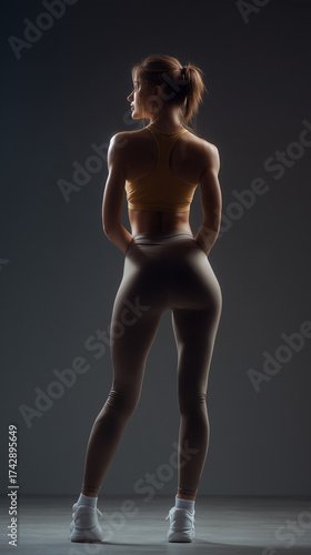 © Attila Kapodarca, Fototapeta premium Glamorous athletic female back view with powerful build