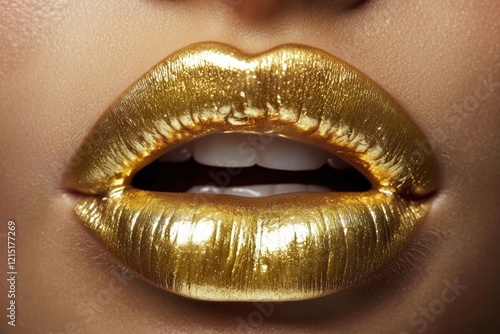 © Umnat, Fototapeta premium Glamorous golden lips that steal the spotlight.