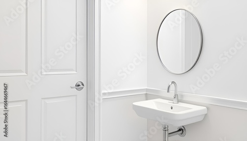 © Nikolai, Obraz premium Glamorous white walls a wall mounted sink and a metallic mirror