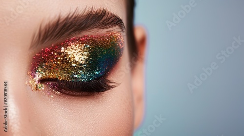 Fototapeta premium Glamourous Young Woman with Sparkling Glitter Eyeshadow and Creative Makeup...