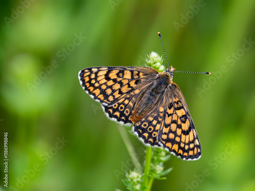 © Stephan Morris , Obraz premium Glanville Fritillary Butterfly Resting With its Wings Open