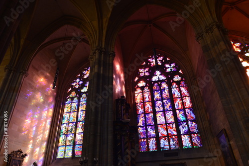 Obraz premium Glasmalerei im Veitsdom auf der Prager Burg