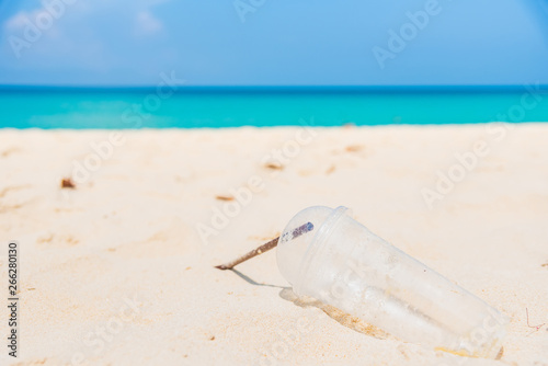 Obraz premium Glass and plastic tube, garbage on the beach thailand.