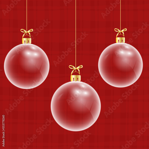 © Kowit, Fototapeta premium Glass ball Christmas on red background. Merry Christmas and happy new year with a glass ball Christmas red background. Christmas and new year background holidays. Vector illustration