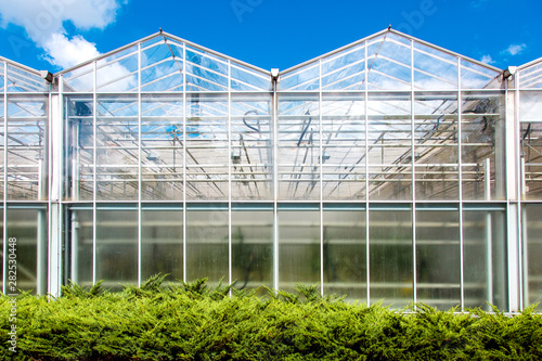 Fototapeta premium glass building agriculture greenhouse vegetable growing, year-round...