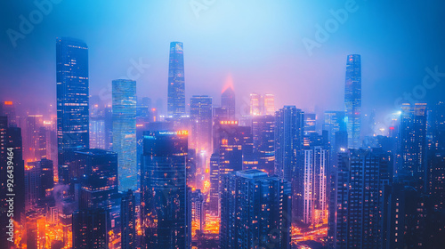 © fadi, Fototapeta premium glass buildings Looking Up modern high-rise office buildings