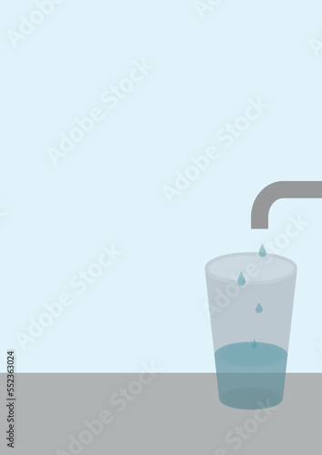 Obraz premium Glass cup with a little water dripping from the faucet.