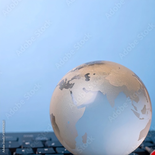 Fototapeta premium Glass Globe on Keyboard Symbolizing Global Connectivity and Digital...