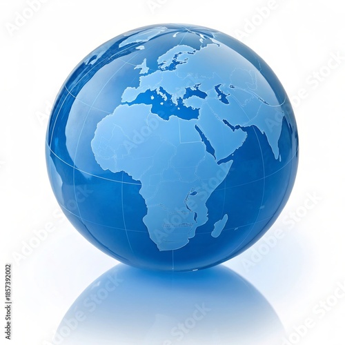 © AI NEX GEN, Fototapeta premium Glass Globe Sphere Displaying Continents of the World with Reflection