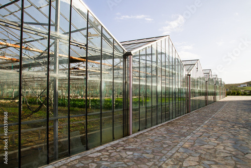 © MM, Fototapeta premium Glass greenhouses in sunlight