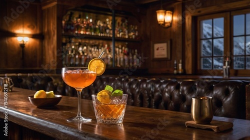 © TanjilaAhmed, Naklejka premium glass of wine in a bar