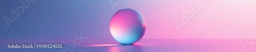 © methinee, Obraz premium Glass orb suspended above a gradient of pink to blue hues, dreamy, abstract
