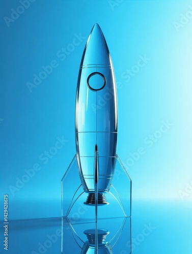 Fototapeta premium Glass Rocket Stands on Reflective Surface
