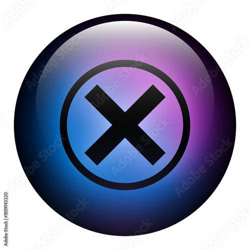 Obraz premium Glass Round Button featuring a Reject icon inside a Ring with Blue and Purple...