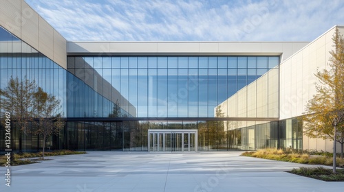 © Roman, Fototapeta premium Glass wall, modern building. Generative AI