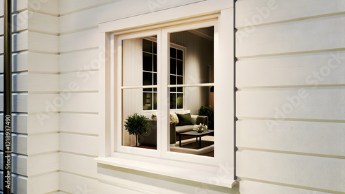 © ThomasStockArt, Fototapeta premium Glass window frame house interior on white wall