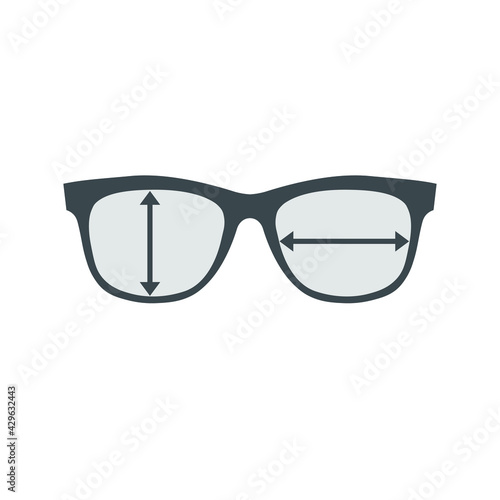 Fototapeta premium Glasses for eye. Propereties size icon and vector.