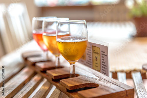 Obraz premium Glasses of cider in a wood table in Norway