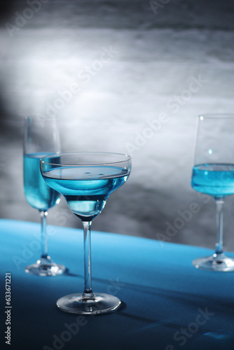 © nastyakamysheva, Obraz premium Glasses with blue alcohol cocktail ready for a party