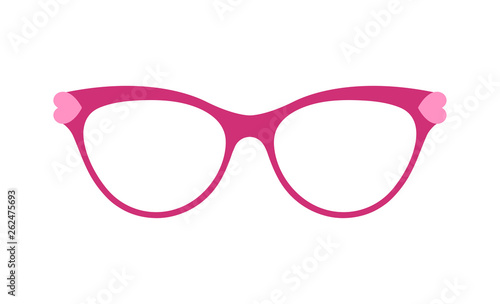 Fototapeta premium Glasses with heart vector. Women's sunglasses, women's accessory. Accessory Art collection cool flat design. Elegant spectacles white background