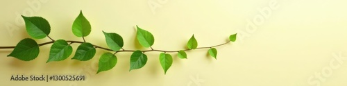 Fototapeta premium Glassy vine with green leaves on a natural beige gradient background, calming...