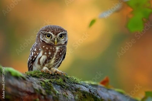 © Dzikrul Husnani, Fototapeta premium Glaucidium passerinum. It is the smallest owl in Europe. It occurs mainly in northern Europe. But also in Central and Southern Europe. In some mountain areas. Photographed in the Czech Republic, ai