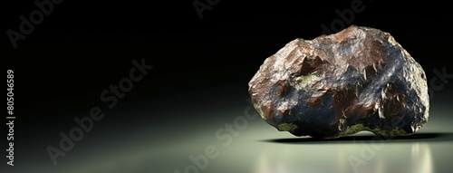 © Serhii, Fototapeta premium Glaucochroite is rare precious natural stone on black background. AI generated. Header banner mockup with space.