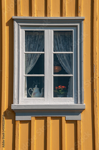 Fototapeta premium Glaumbaer Iceland, window with curtains and knick-knacks