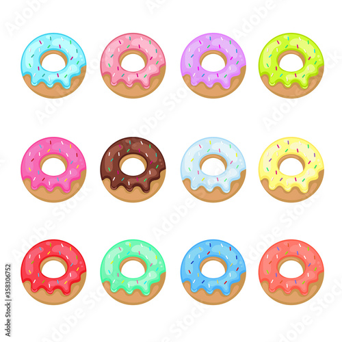 Fototapeta premium Glazed donuts colorful set. Vector illustration. Eps10