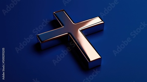 © WSP Studio, Fototapeta premium Gleaming Christian Cross Against a Deep Blue Backdrop Radiating Hope and Belief with a Metallic Sheen