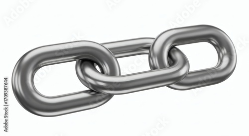 © JuliusGideon, Obraz premium Gleaming 3D rendered metallic chain links, symbolizing robust connection, security, and unbreakable unity, depicted against a clean white background for conceptual designs