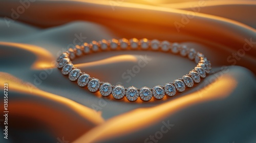 © AGUNG, Fototapeta premium Gleaming diamond necklace rests on golden silk
