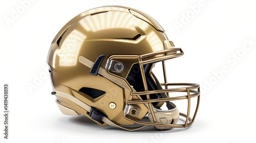 © maax, Naklejka premium Gleaming Golden American Football Helmet Isolated on a Pristine White Background, Symbolizing Athletic Achievement and Victory