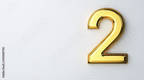 Fototapeta premium Gleaming golden number two on bright background, symbolizing celebration and...