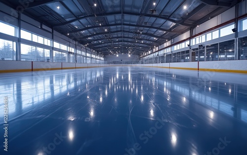 Fototapeta premium Gleaming Ice: An empty hockey rink awaits the thrill of the game. Prepare for...