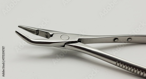 © Budi, Obraz premium Gleaming Stainless Steel Dental Pliers - Precision Instrument on Clean White Backdrop.