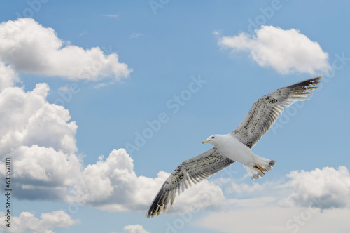 © Takacs Szabolcs, Obraz premium Gliding seagull with clouds