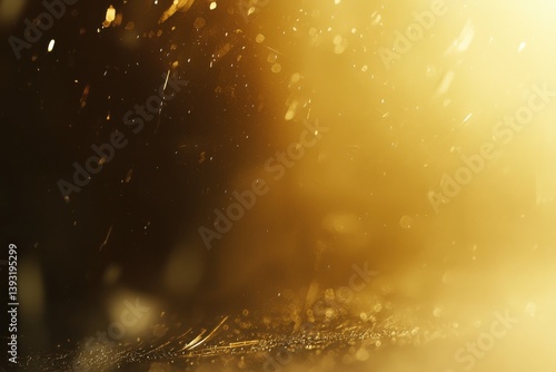 © possawat, Naklejka premium Glimmering Gold Dust Particles in Soft, Dreamy Background Light