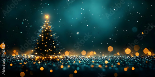 Naklejka premium Glimmering Lights Adorn Festive Tree, Sparkling Winter Night