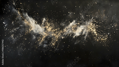 Fototapeta premium Glimmering silver and gold particles merging on a jet-black canvas with...