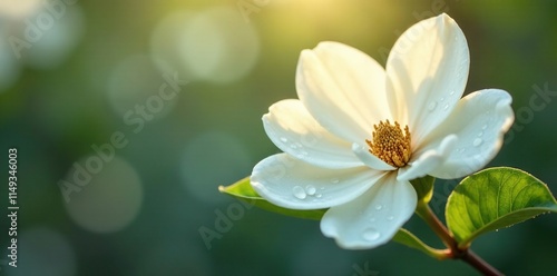 © Withun, Fototapeta premium Glistening dewdrops cling to creamy white magnolia blossoms, droplets, floral