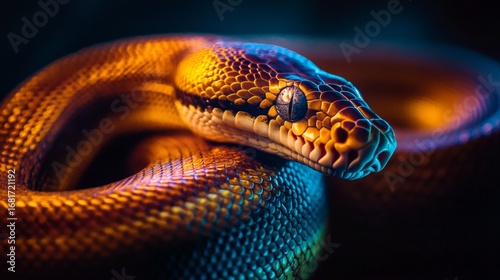 Fototapeta premium Glistening python scales closeup exotic habitat macro photography natural environment detailed view serpent beauty