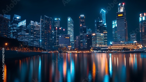 © Bijali, Fototapeta premium Glistening singapore cityscape under starry night sky picture