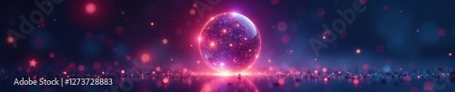 © suchetpong, Obraz premium Glistening sphere suspended in air amidst stars, radiant, glow, futuristic