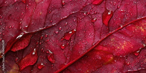 © Tevarplus, Fototapeta premium Glistening water drops Leaf under morning sun A detai