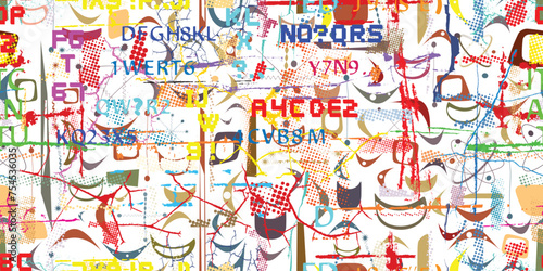 © miloje, Obraz premium Glitch distorted abstract words . Seamless pattern texture. Pixel fonts .Screen print endless pattern texture