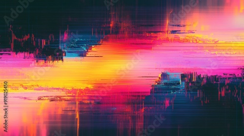 © Rattana, Obraz premium Glitched Retro Digital Rainbow Flickers on Lo-Fi Vector Background.