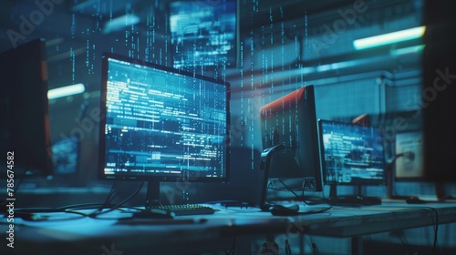 © ArtStage, Fototapeta premium Glitchy computer monitors hovering in mid-air AI generated illustration