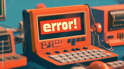 Fototapeta premium Glitchy Error Screen in Broken Tech Control Room