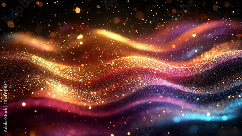 Obraz premium Glitter Colorful Golden Wave Stripes. Trendy Design texture. Shiny moving...